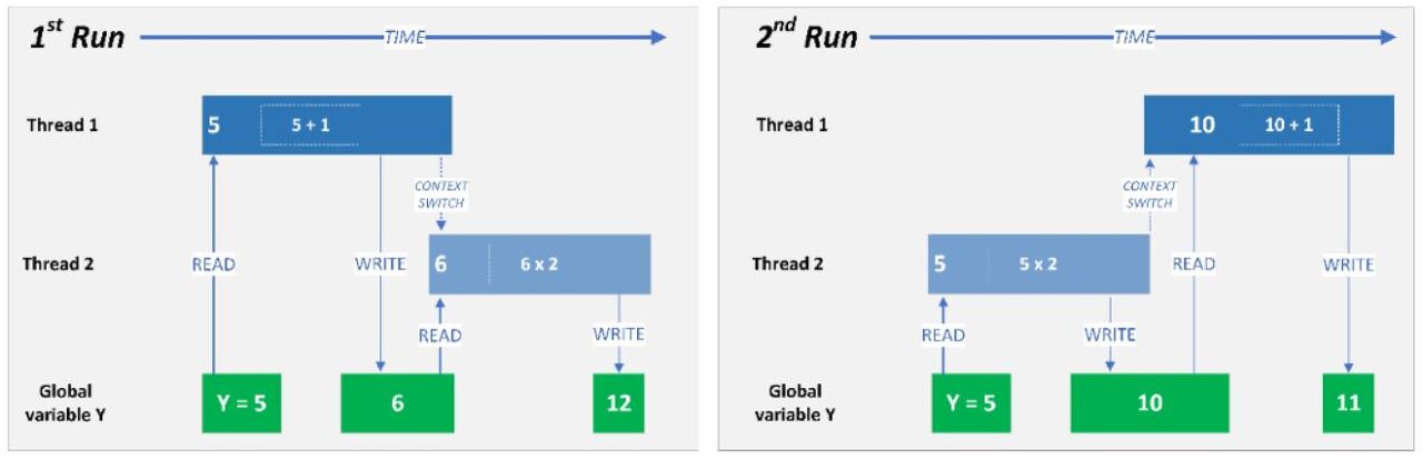 race condition을 방지하려면 적절한 동기화 메커니즘이 필요하다. race condition이 발생하면 프로그램의 동작이 예측 불가능해지며, 버그와 같은 심각한 문제를 야기할 수 있다.